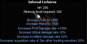 Prvního infernal peta si zakoupíte u barmanky Lumen v Lorencii za 515,000,000 Zen a následně je upgradujete s pomocí Pet Heart. Každý další upgrade vyžaduje víc srdíček, ale na rozdíl od Evolved Fenrirů je šance na upgrade 100% a nikdy vám neselže.