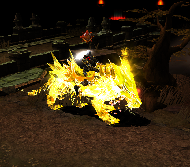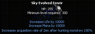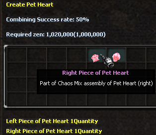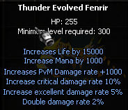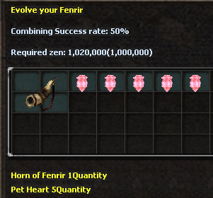 Výroba: Do chaos mašiny vložíte Horn of Fenrir (červený) a k němu přidáte 5x Pet Heart. Šance na úspěšnou evoluci je 50% a při neúspěšné kombinaci všechny itemy zmizí.