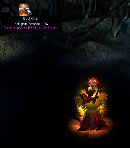 God Killer buff získáte zabitím boss monstra. Buff může získat celá parta, která bosse porazila. Přidává 10% exp a expirace je 60 minut. Buff je označený ikonou, podobně jako sealy a také bude vaše postava obdařena vizuální aurou, která nápadně indikuje získaný buff (Rotující oranžová aura na zemi pod postavou a silnější RGB nasvícení samotné postavy)