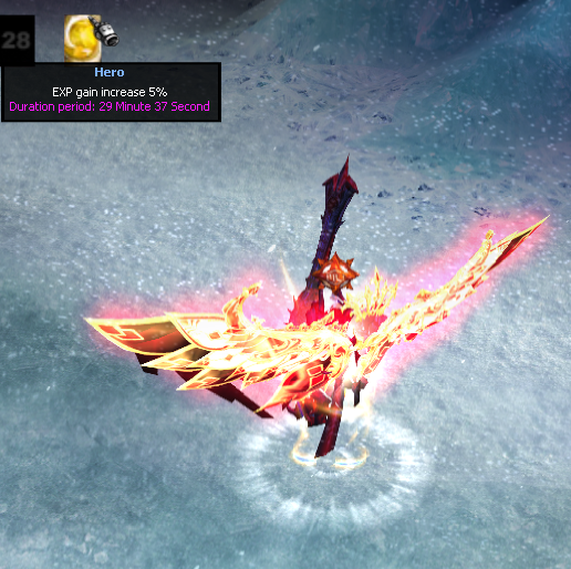 Hero buff získáte zabitím golden monstra. Buff může získat pouze hráč, který zabil nějaké golden monstrum. Přidává 5% exp a expirace je 30 minut. Buff je označený ikonou, podobně jako sealy a také bude vaše postava obdařena vizuální aurou, která nápadně indikuje získaný buff (Pulzující RGB aura na zemi pod postavou a slabé nasvícení samotné postavy)