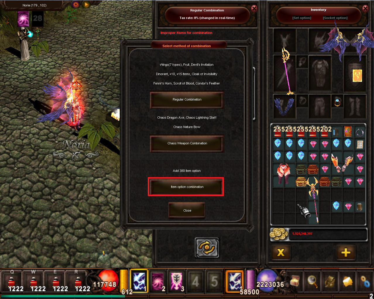 Teď zpět k vylepšování přidání optionu je nutné navštívit NPC Chaos Goblin a zvolit možnost „add 380 item option“ následně přidat: