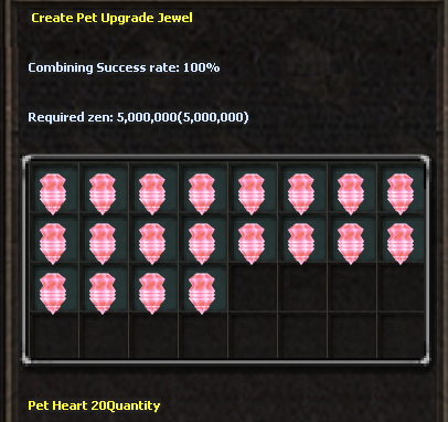 Pet Upgrade Jewel je jako odměna pro vítěze Illusion Temple nebo jej můžete vytvořit v chaos mašine za použití 20x Pet Heart.