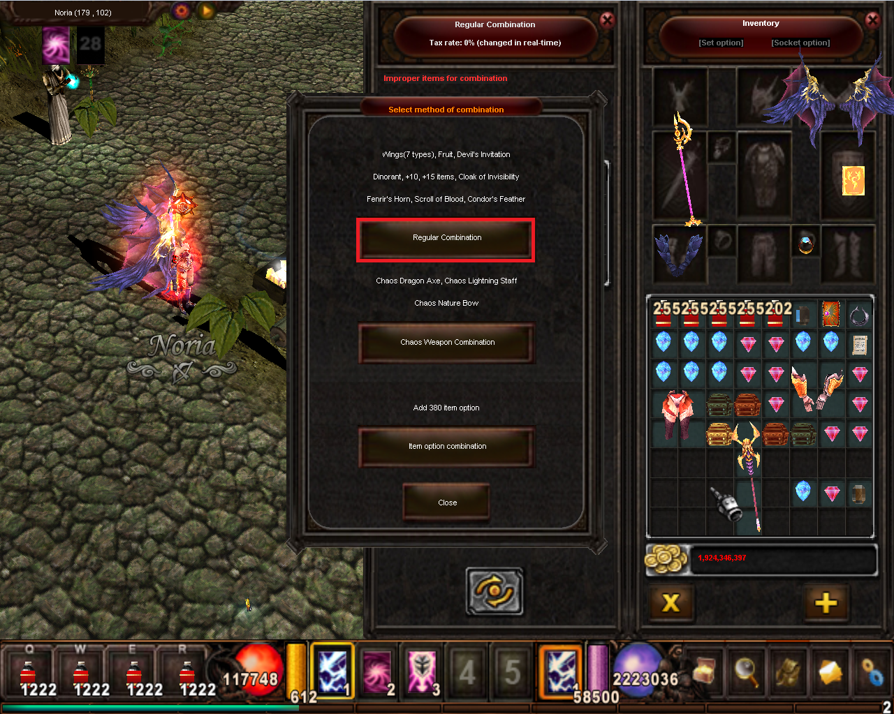 1st křídla nejméně +4+4 (čím větší level a option itemu, tím více % na úspěšnost kombinace)