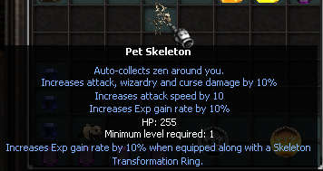 Pet automaticky sbírá zeny, zvyšuje dmg, wizardry a curse o 10%. Dále zvyšuje attack speed a zvyšuje expy o 10%. Používá se v kombinaci se Skeleton Ringem či Panda ringem.