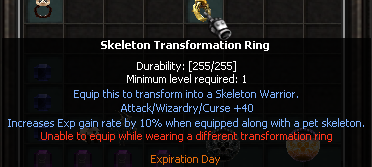 Bonus exp obou ringů ve spojení se Skeleton a Panda petem je 15%. Transformace je cíleně zablokovaná u obou ringů a nelze ji zapnout.