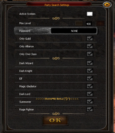 Pokud jste měli kdy problém s vyhledávám členů party a na nových seasons se Vám líbilo integrované vyhledávání, tak tuto funkcionlitu si můžete u nás užít také. Pomocí CTRL+N se dostanete do nastavení party (pro založení) a skrz N se dostanete do seznamu již založených skupin.